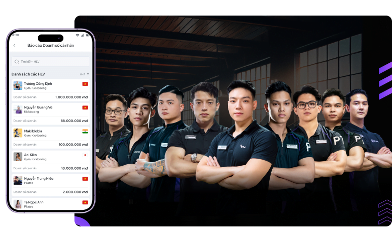 Giúp chủ phòng tập và nhân viên quản lý được tiền lương, hoa hồng bán & dạy theo thời gian thực (real-time reporting).